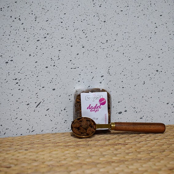 Dadelstukjes zijn gesneden en gedroogde stukjes dadel. Vervolgens zijn ze heel licht met rijstbloem besprenkeld. Deze dadelstukjes zijn heerlijk te verwerken in ontbijtmout, smoothies of bijvoorbeeld dadel/cacao balletjes. Deze dadelstukjes zijn door Volvoed besprenkeld met kaneel van ongekende kwaliteit, wat voor een scherpzoete smaaksensatie zorgt. Ze worden op deze wijze onweerstaanbaar om zo uit de hand te eten. De dadels waarvan deze stukjes gesneden zijn, komen uit Pakistan.