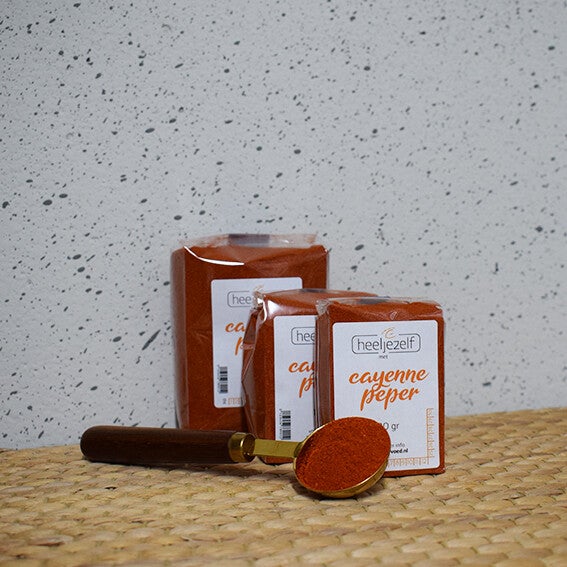 Dit is een scherpe tot poeder gemalen pikante pepersoort. Gemiddeld pittig van smaak(kan voor sommige mensen al als extreem pittig ervaren worden). Het is te gebruiken in elk gerecht dat je meer pit wilt geven of pikanter wenst te maken. Ook heeft deze peper nog enkele gezondheidseffecten: Cayennepeper stimuleert het metabolisme en ondersteunt gewichtsverlies, het poeder is rijk aan antioxidanten en bevordert de algehele gezondheid. Capsaïcine in cayennepeper heeft pijnstillende eigenschappen. Deze cayennepeper komt uit China.