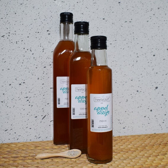 Appelazijn is een lichtgeel tot geelachtige azijn gemaakt van gefermenteerd appelsap. Tijdens het vergisten van appels worden de suikers in de appels door het fermentatieproces omgezet in alcohol waarna er bacteriën aan toegevoegd worden en er azijn ontstaat. Het heeft een friszure smaak en is heerlijk te gebruiken in bijvoorbeeld salades, sauzen, dressings, maar ook bijvoorbeeld in een stoofpot of rijstgerecht. Deze appelazijn is ontzettend puur; het heeft zelfs nog stukjes appelfermentatie in de azijn, de azijn is troebel, wat wil zeggen dat het ongefilterd is, waardoor alle heilzame stoffen nog in de azijn zitten. De appels voor deze appelazijn komen uit Duitsland.